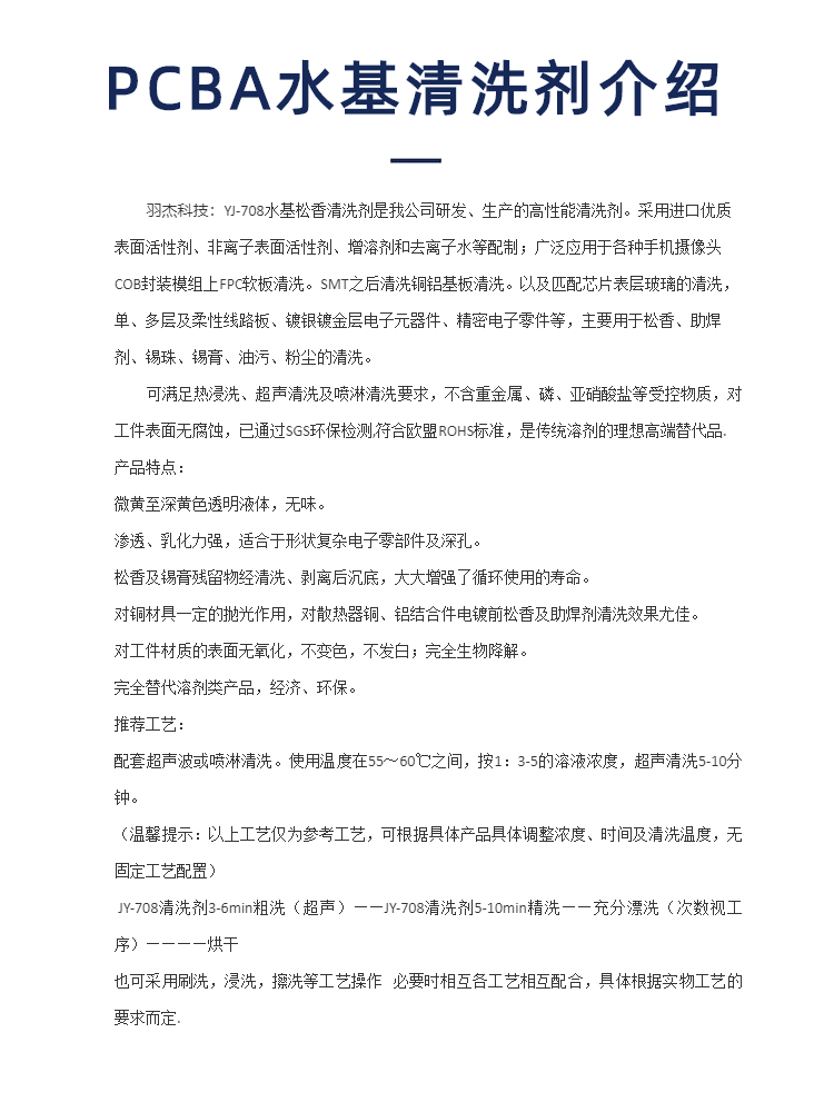 羽杰科技:研發、生產的高性價比PCBA線路板清洗劑。采用優質表面活性劑